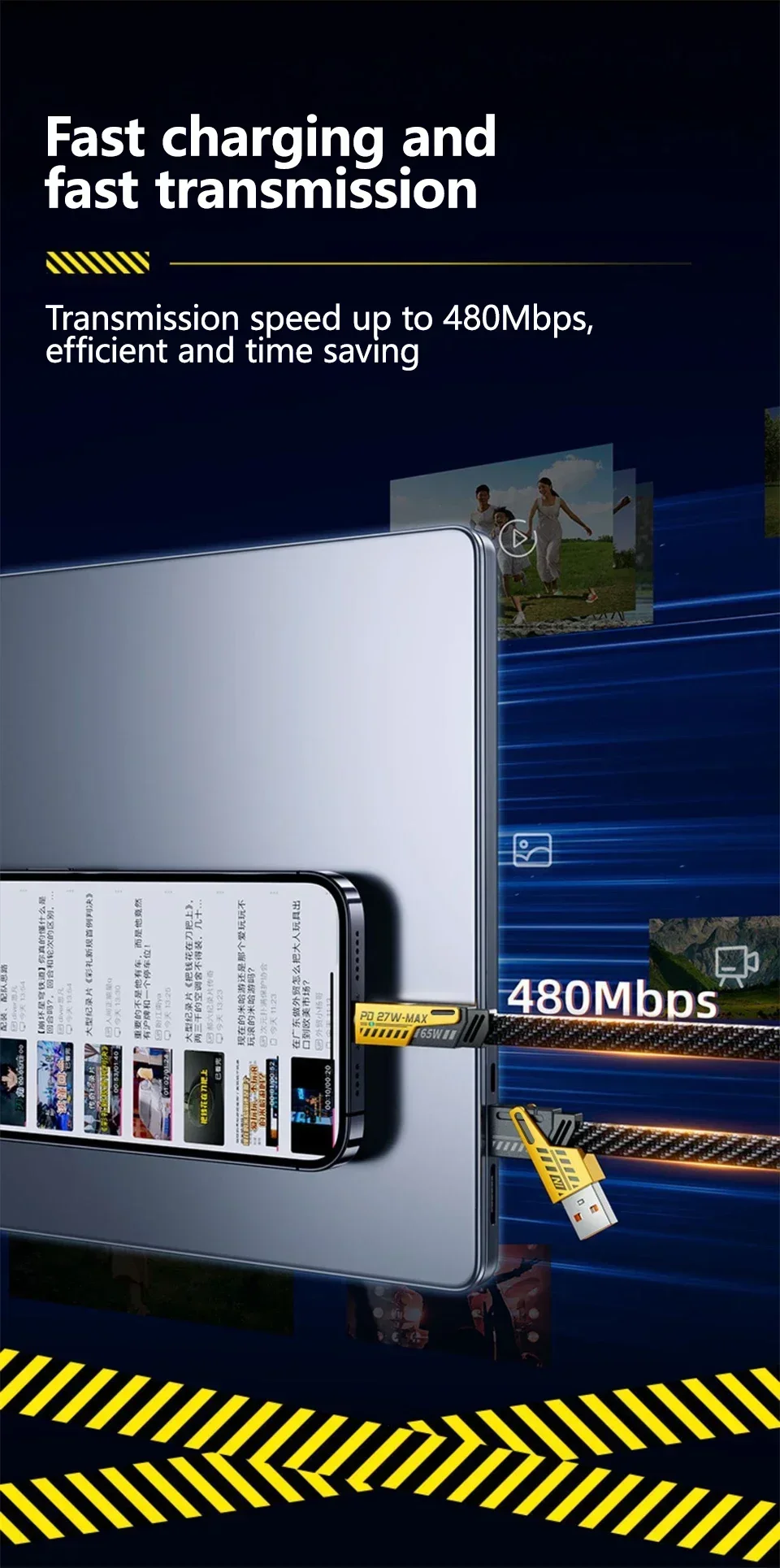 Cavo Ricarica 4in1 Giallo Grigio Apertura Dimensioni Lunghezza 1 Metro Acciaio Metallo Ricarica Veloce