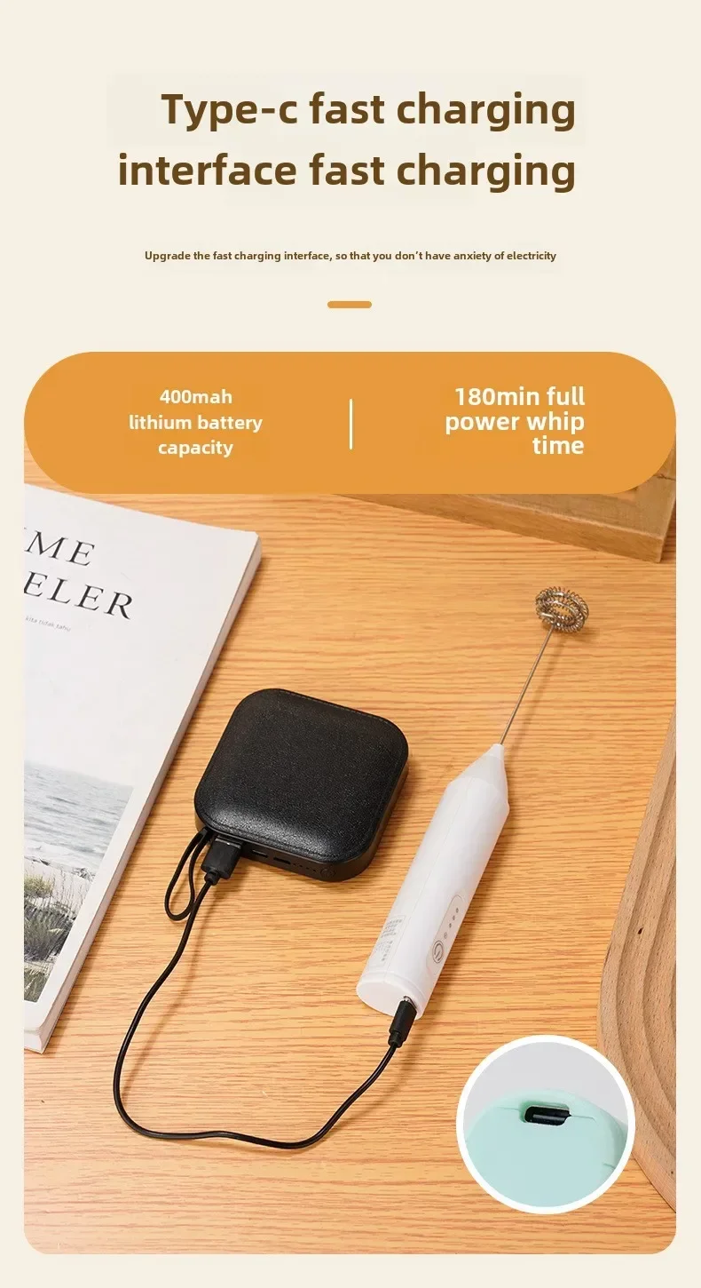 Accessori Cucina Frullatore Mini Monta Latte USB Ricaricabile 3 Velocità