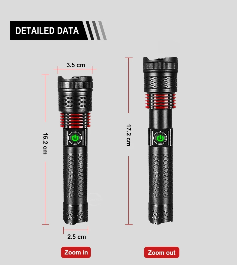 Torcia 4 Modalità Illuminazione Ricaricabile Metallo Colore Nero Lontananza 3500m