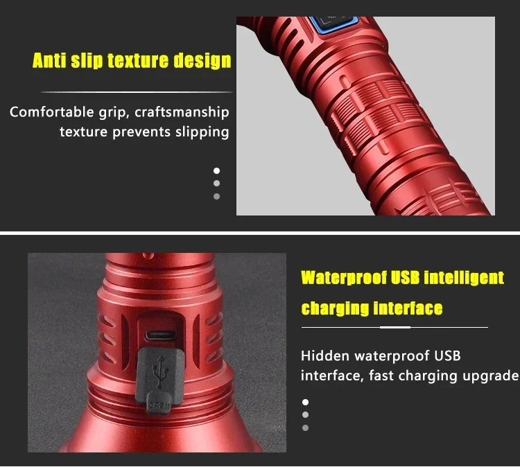 Torcia Rosso Nero Diversi Colori Modelli Acciaio Resistente Ricaricabile Illuminazione