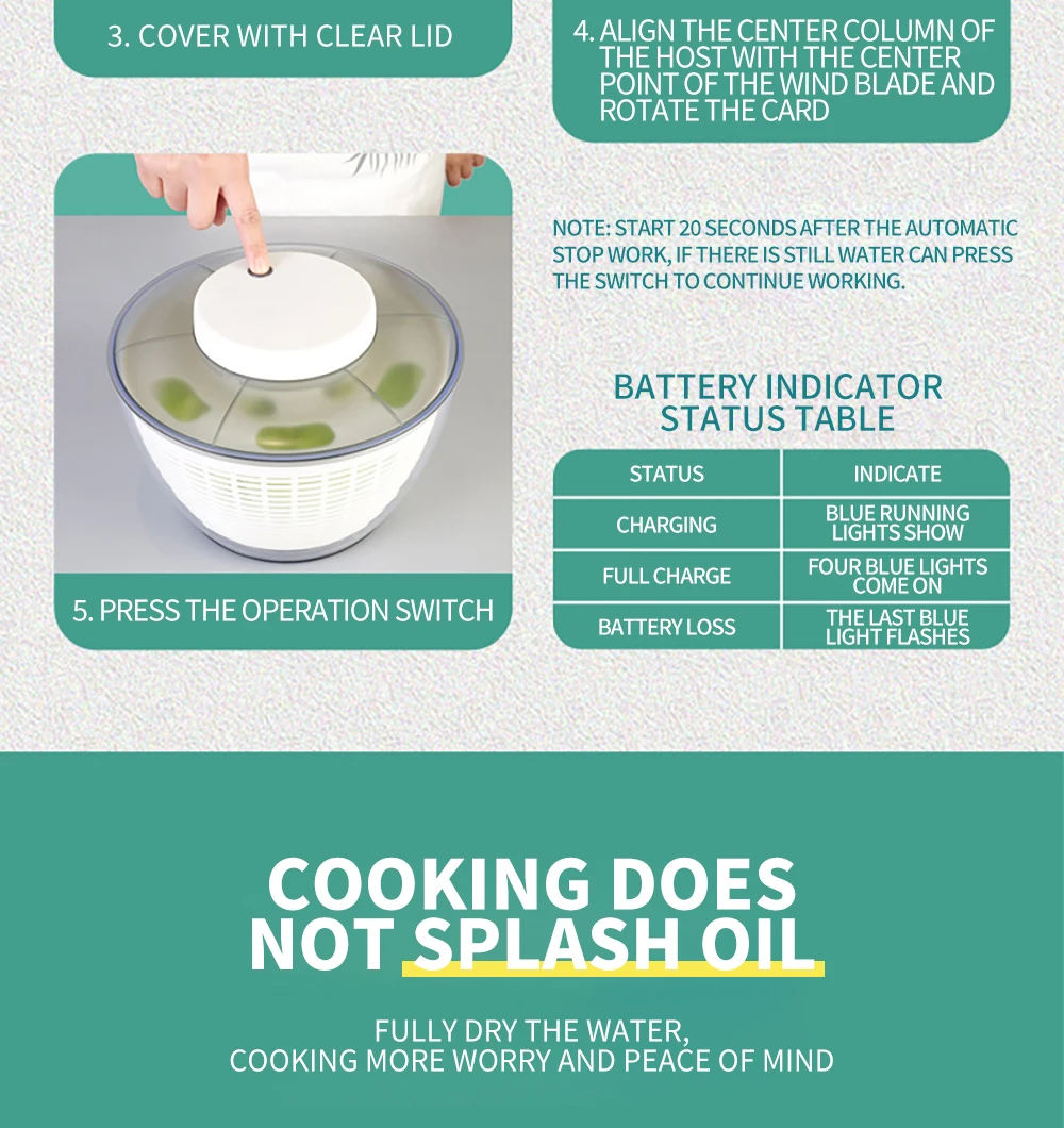 Centrifuga Elettrica Colore Bianco Cavo USB Ricaricabile Elettrodomestici Casa