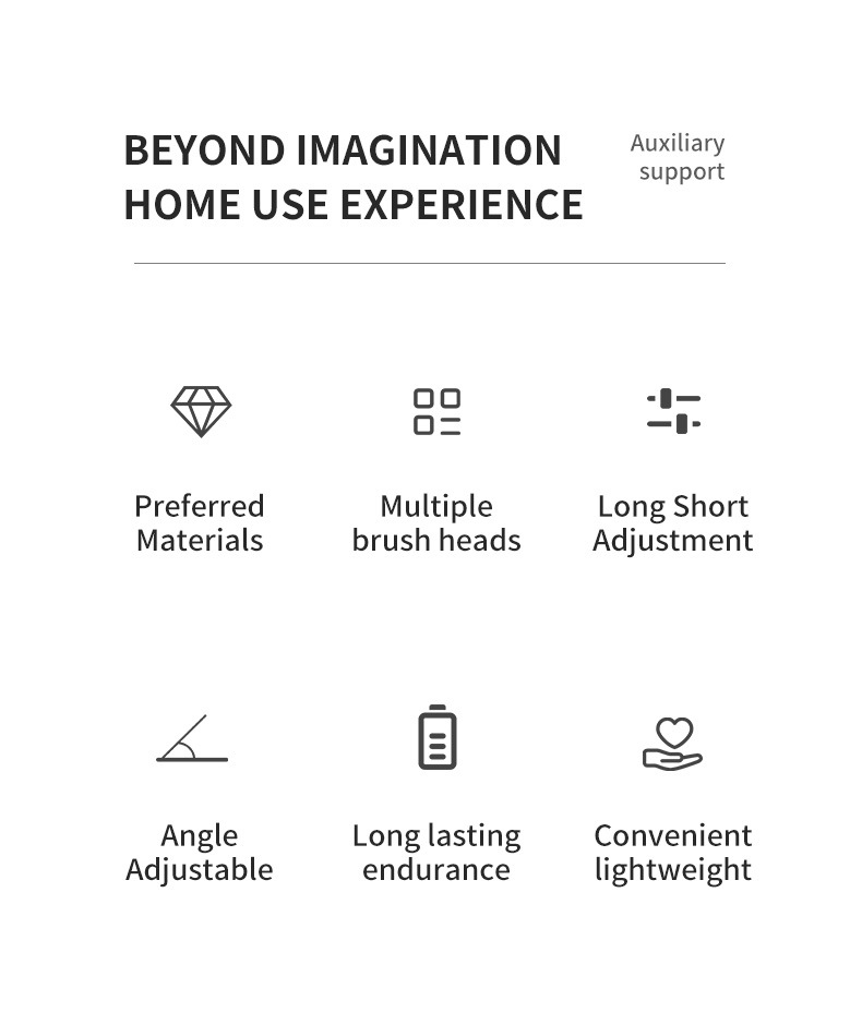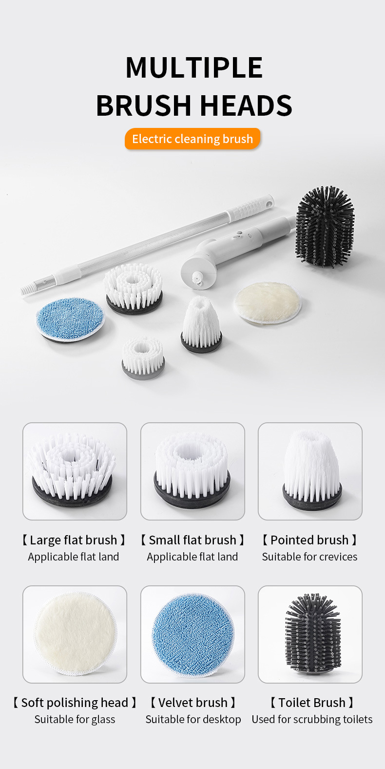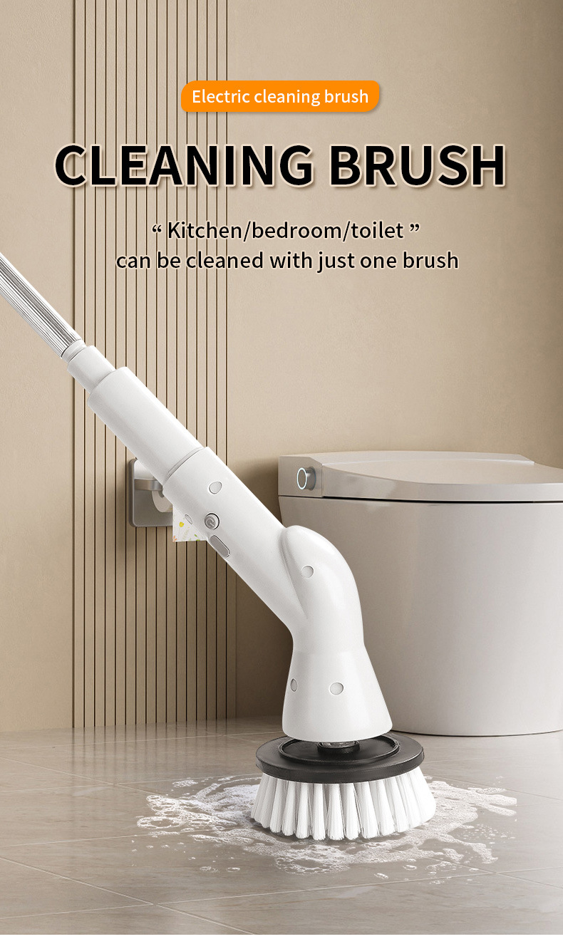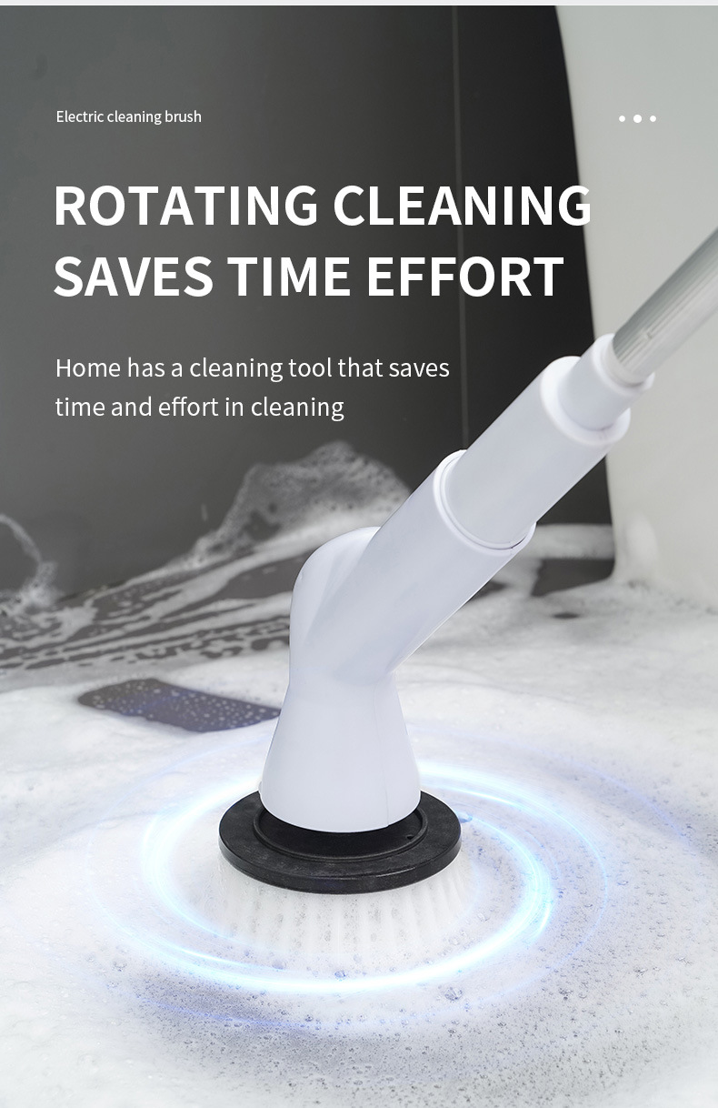 Spazzola Elettrica Ricaricabile USB Altezza Regolabile 63-95cm Colore Bianco Testine Ricambio Diversi Modelli Pulizia Casa Set 5/6 Pezzi