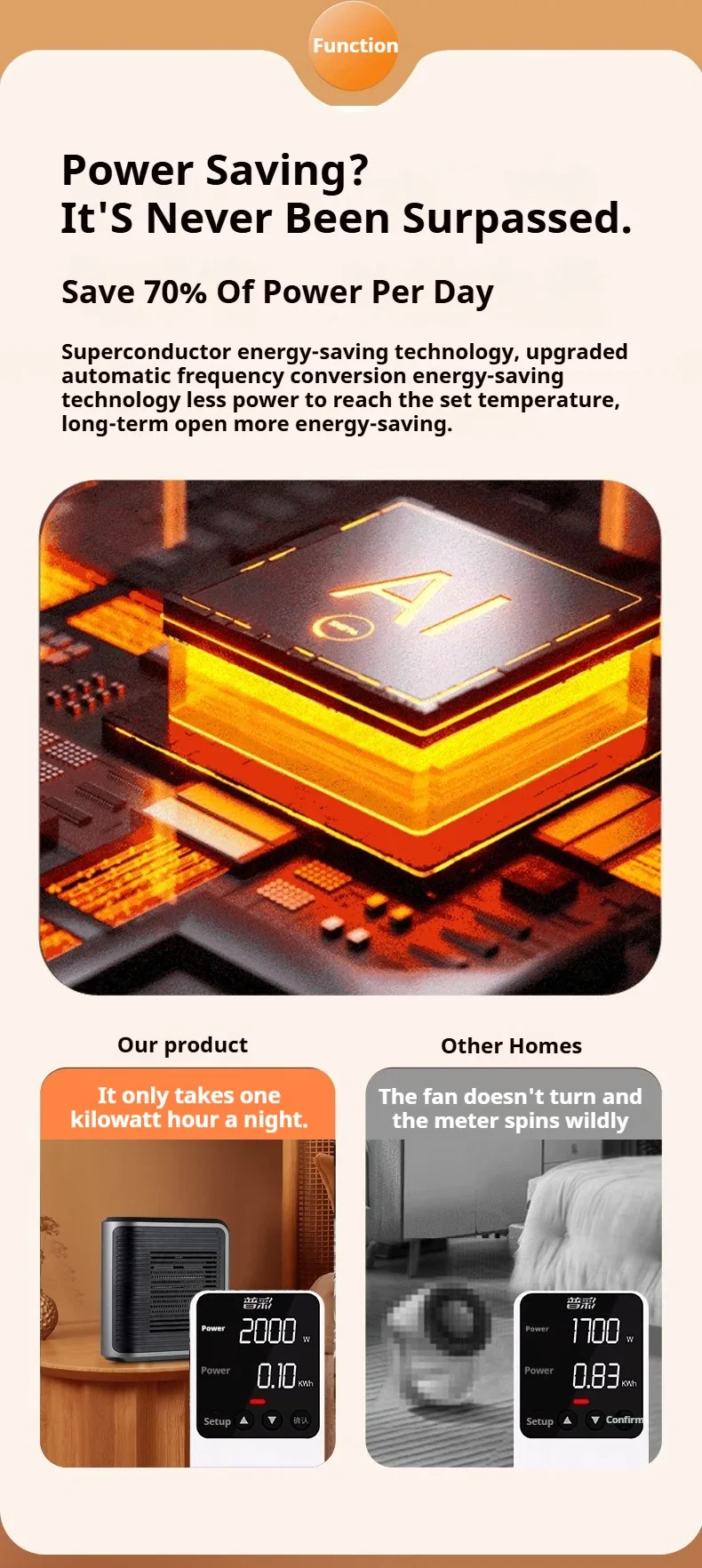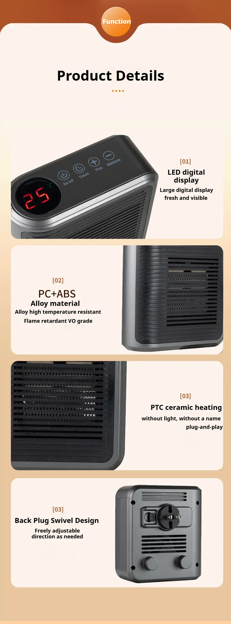 Stufetta Elettrica Colore Nero Display LED Riscaldatore Ambiente Elettrodomestici